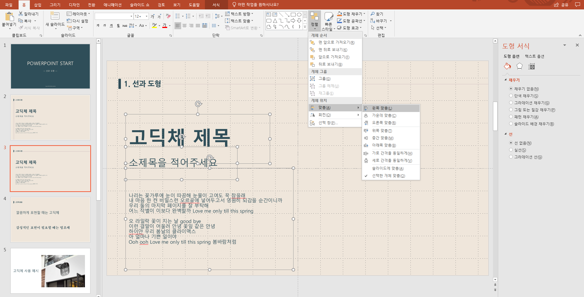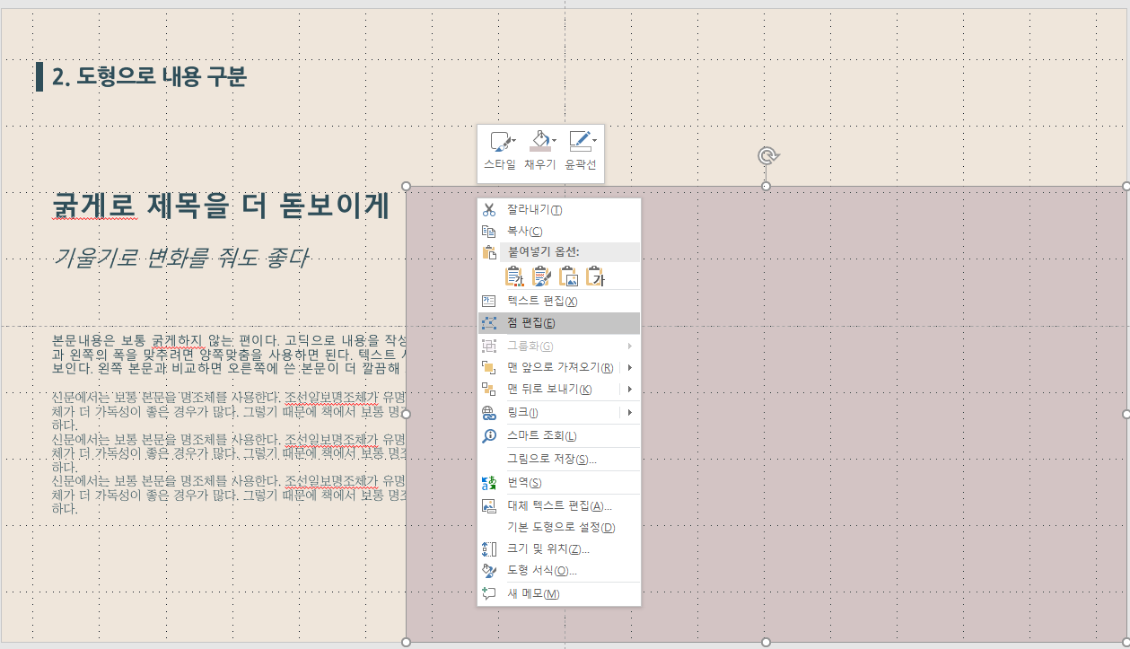 도형을 클릭한 상태로 우클릭을 하면