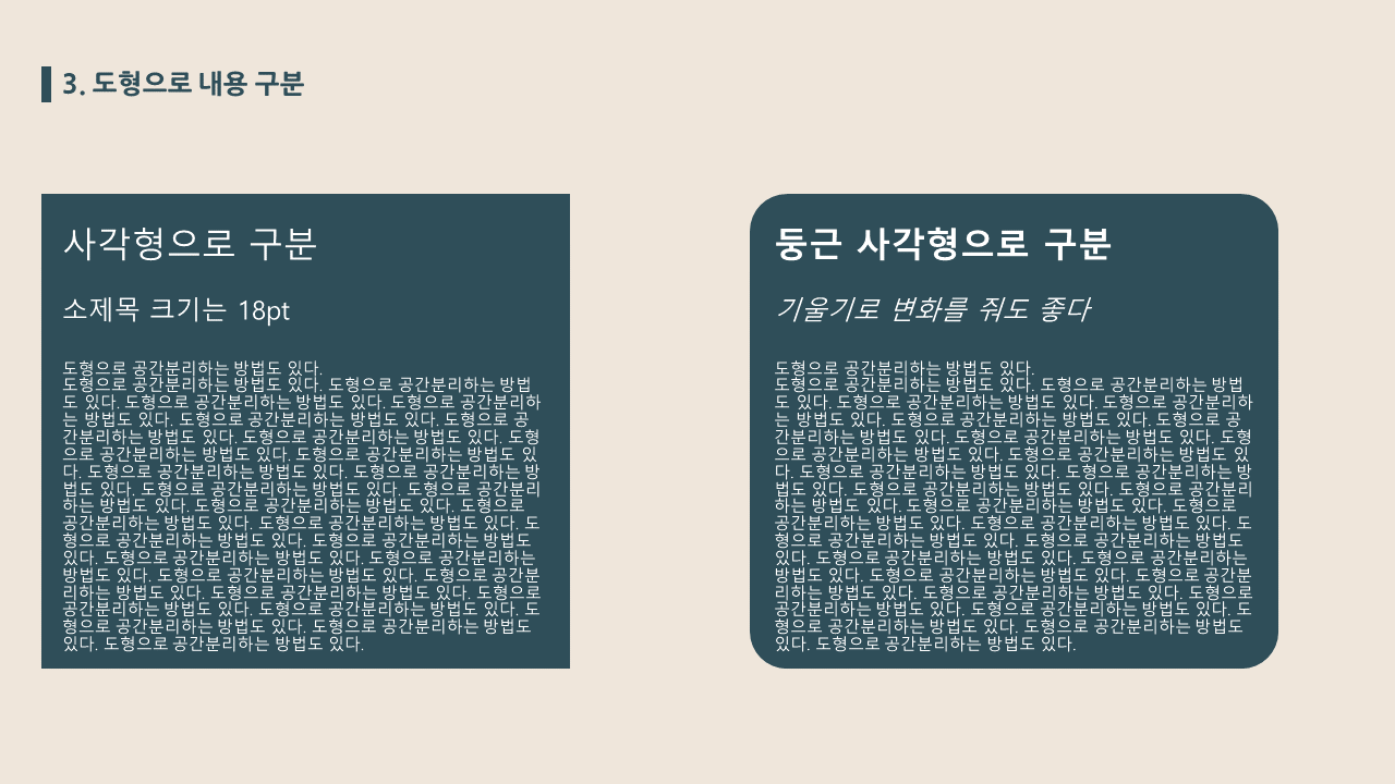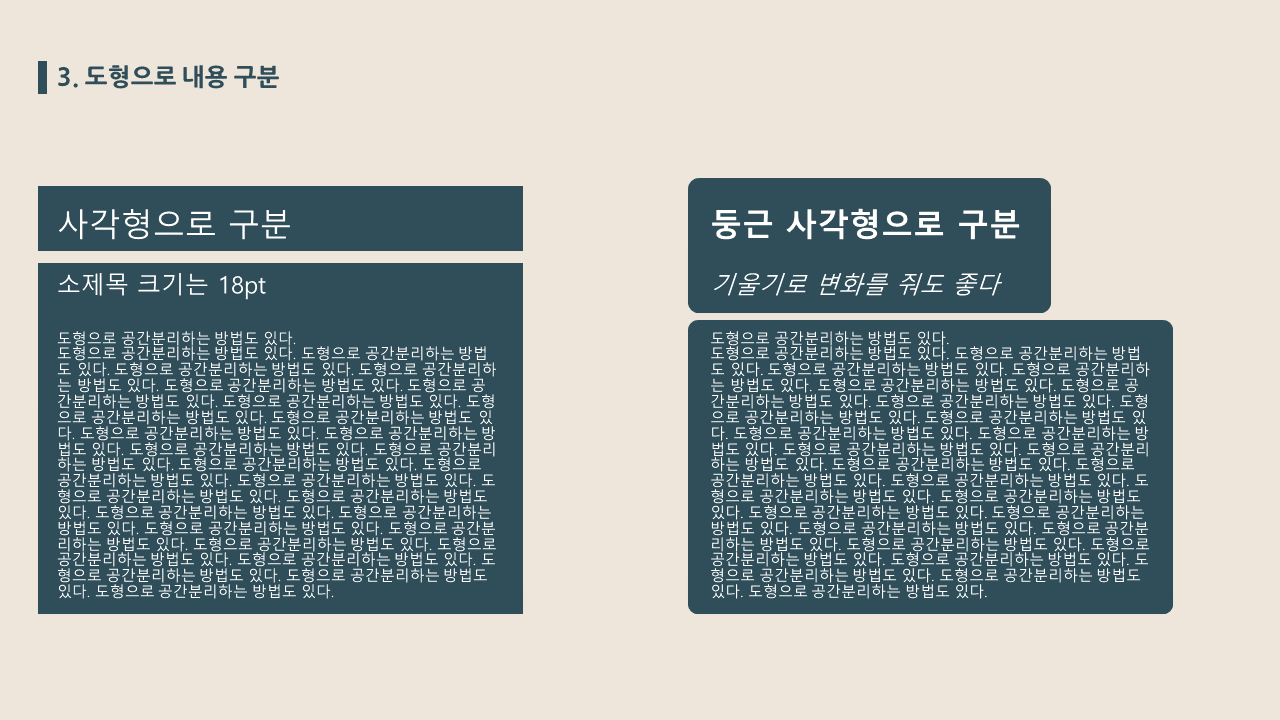 내용 구분은 도형으로 하면